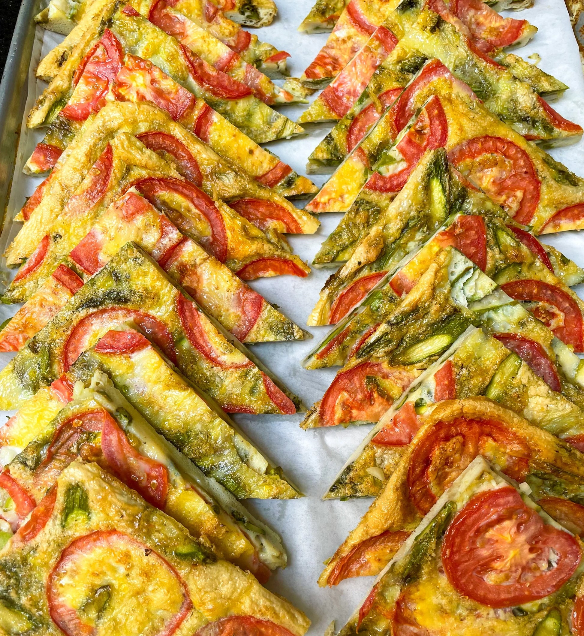 Easy healthy breakfast solution filled with veggies with pistachio pesto dipping sauce
